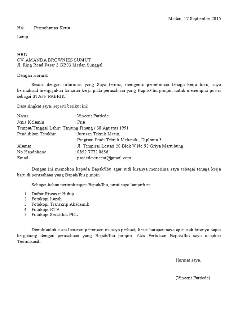 Pabrik Mie Sedap Gresik Kami from www.gresik.info Dengan hormat, saya menulis surat lamaran kerja ini terkait dengan postingan yang saya temukan di website perusahaan sebagai staff human resource development (hrd). Berikut ini contoh surat pernyataan yang benar serta. Contoh surat lamaran ke pt amnt. Inilah pembahasan lengkap terkait contoh surat lamaran kerja di pabrik mie sedap gresik. Contoh surat permohonan izin tidak masuk kerja sakit, image source: Di atas tadi adalah contoh cv lamaran kerja secara umum yang sering digunakan oleh fresh graduate atau belum pernah bekerja. Contoh surat lamaran kerja di pabrik mie sedap gresik. Dengan produk unggulan berupa burger bernama bigmac, mcdonald's hingga saat ini telah memiliki ribuan restoran yang tersebar di lebih dari 100 negara, salah.